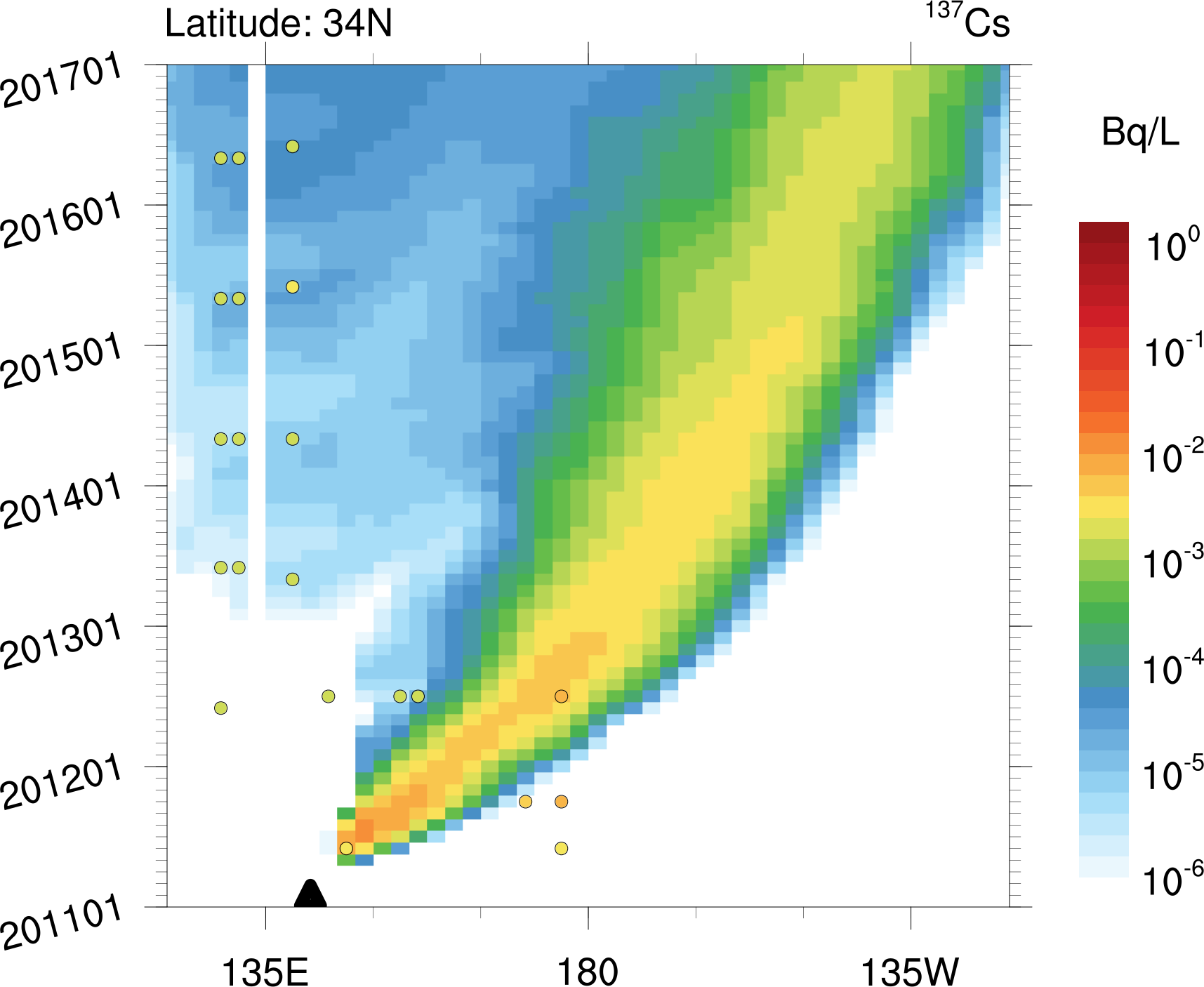 Kawamura, H., Kobayashi, T., Furuno, A., In, T., Ishikawa, Y., Nakayama, T., Shima, S., and Awaji, T.: Preliminary Numerical Experiments on Oceanic Dispersion of 131I and 137Cs Discharged into the Ocean because of the Fukushima Daiichi Nuclear Power Plant Disaster, Journal of Nuclear Science and Technology, 48, 1349–1356, https://doi.org/10.1080/18811248.2011.9711826, 2011.
