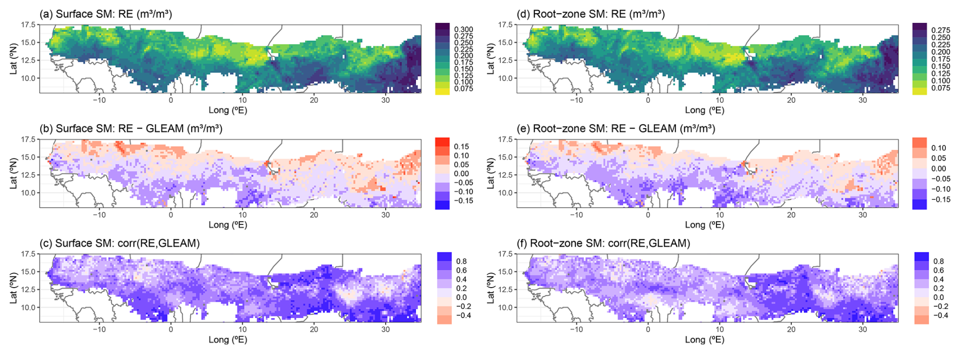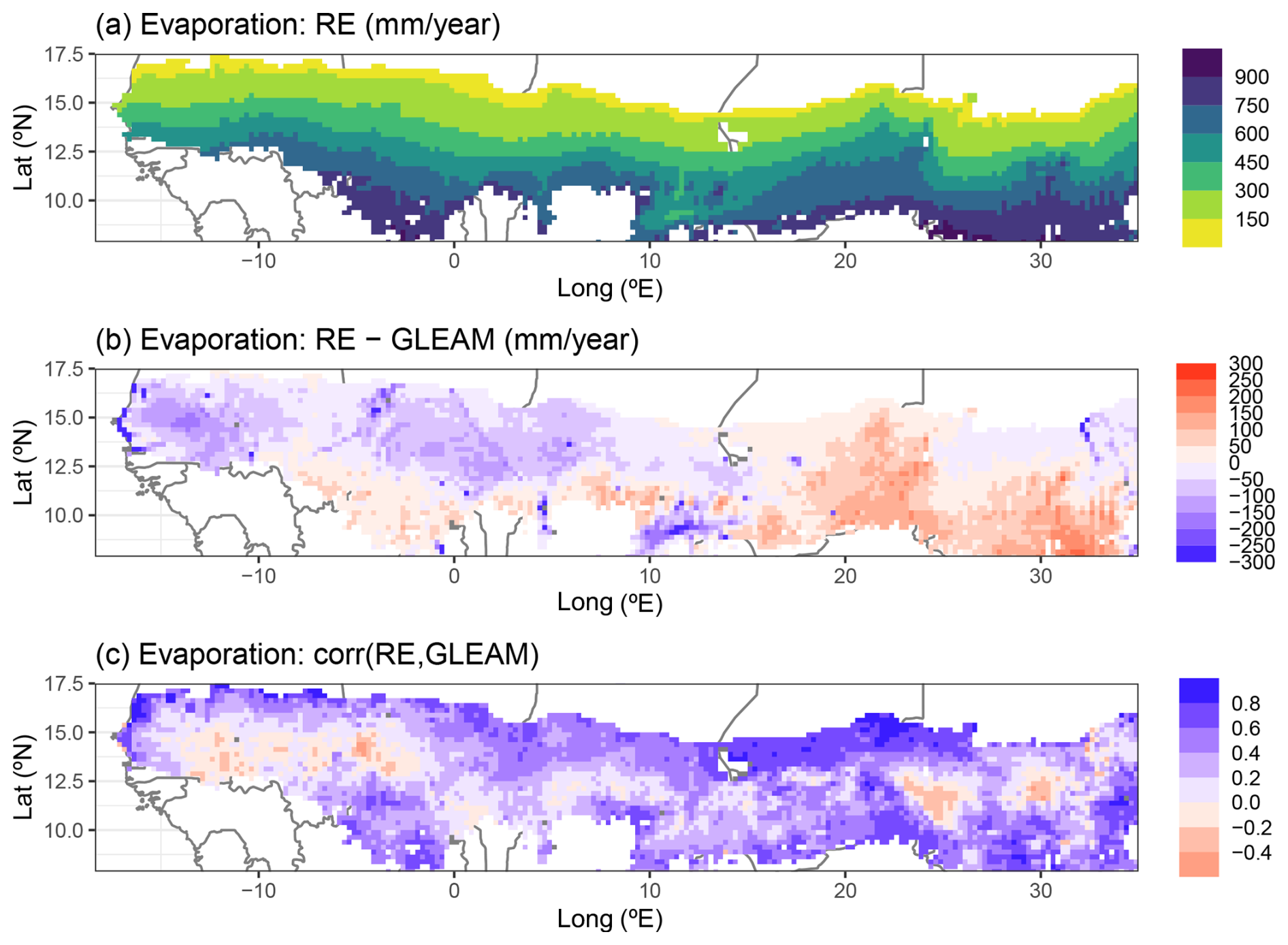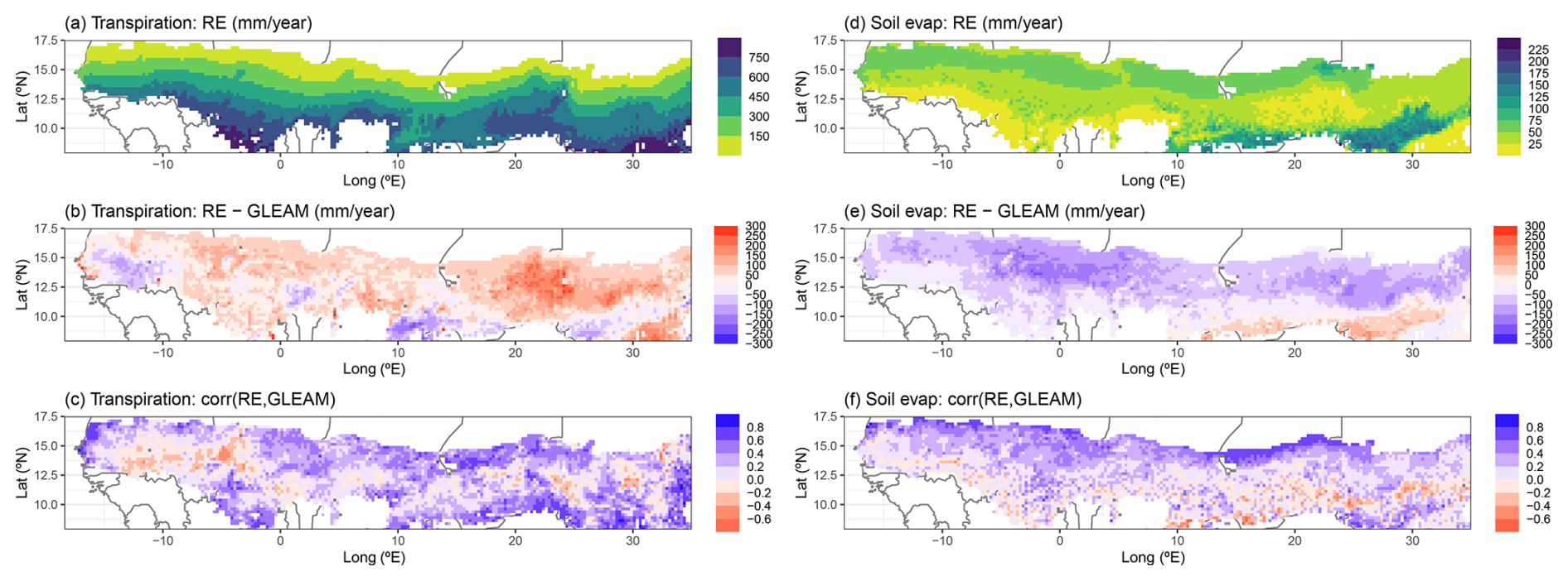For the site-scale simulations and model evaluation we focused on the Dahra flux tower site, located in the Sahelian zone of Senegal (15°2410′′ N, 15°2556′′ W). This site is a grazed semi-arid savanna with a mean annual rainfall of 416 mm, which mainly occurs during a short rainy season (July–September). It is equipped with sensors measuring meteorological and hydrological conditions, as well as an eddy covariance system for continuously measuring carbon, water, and energy fluxes from 2010 (Tagesson et al., 2015; Wieckowski et al., 2024).