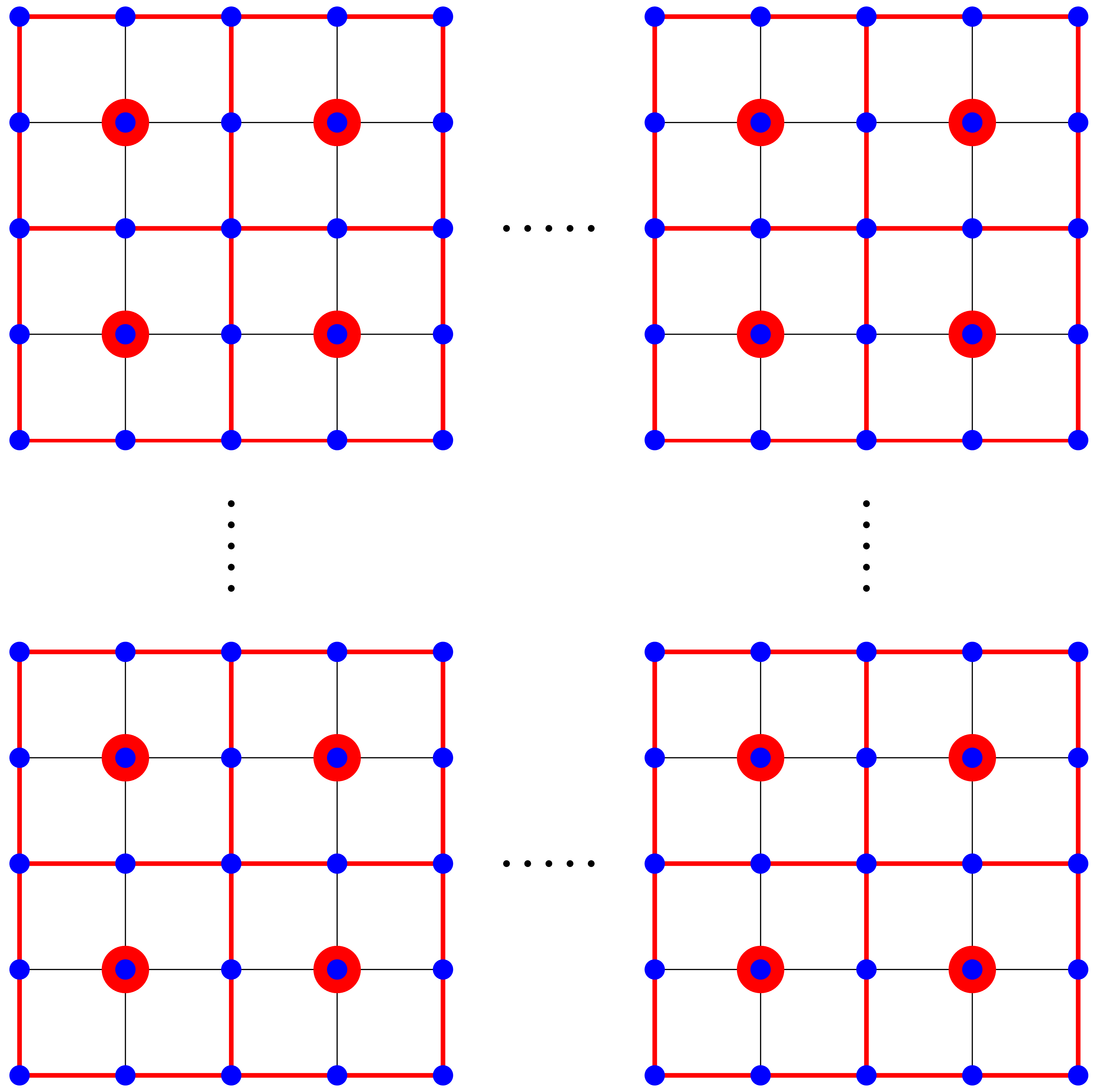 The ERA5 reanalysis data with a horizontal resolution of 0.25°×0.25° were selected as the data source to develop the model in this study. We divided global segments into regular windows with the same horizontal resolution as the ERA5 reanalysis data. The specific process was as follows: starting from the first window, by using the data of nine gridded points in each window, the model coefficients of the corresponding window were calculated in order from west to east and from north to south and stored at the geometric centre of the corresponding window. Finally, all the coefficients for the global Tm vertical adjustment rate model were obtained. As shown in Fig. 4, blue dots denote ERA5 gridded points, and red dots denote centre points of the window; the red rectangle denotes the size of the sliding window.