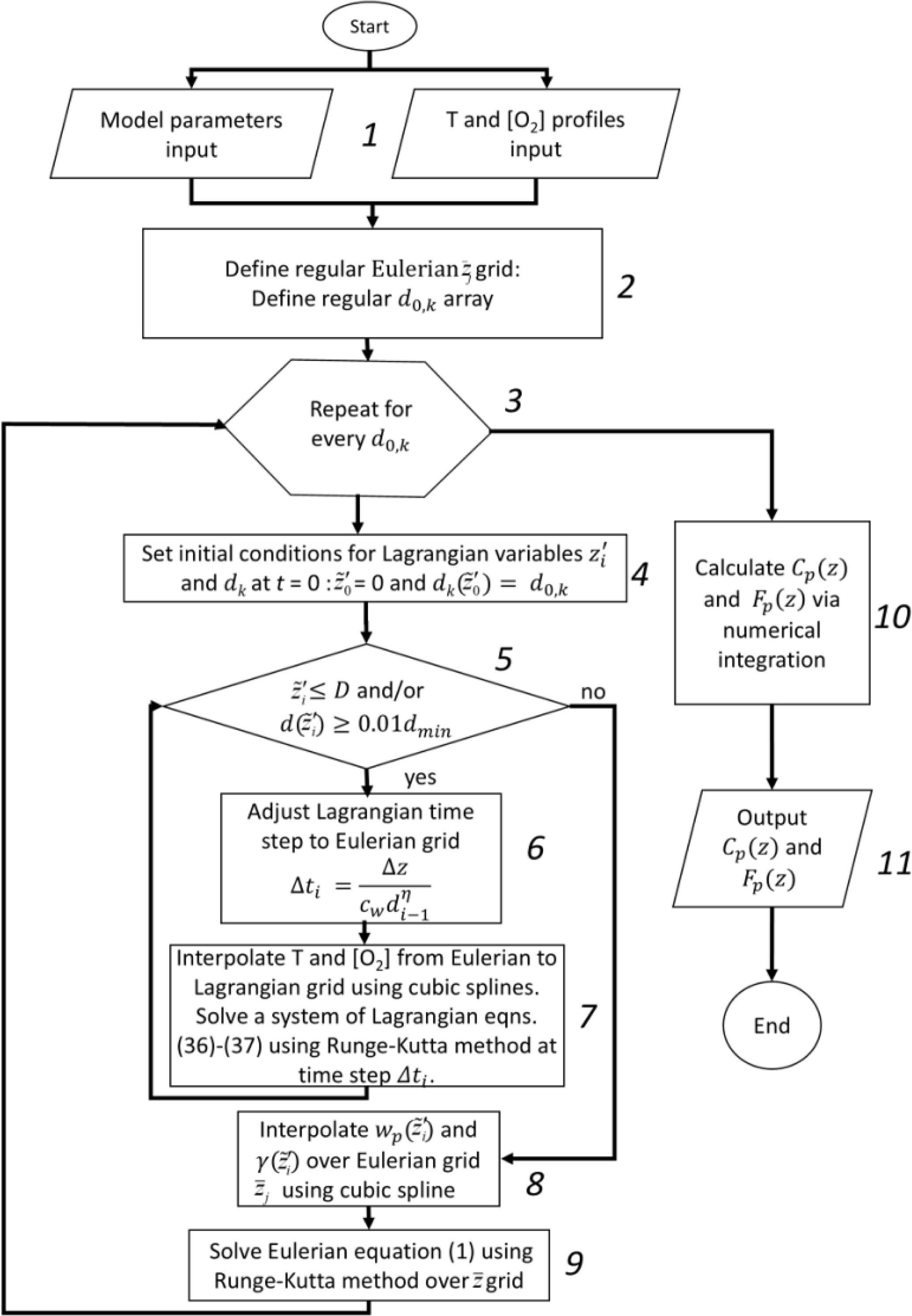 Step 10. The total POM concentration and POM flux are obtained via numerical integration of and by using the composite Simpson's rule.