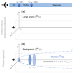 In the instantaneous dispersion approach, the ID box is initialised diluting the emissions inside a large-scale grid-box with a cross-section area Agridbox=300 km2. Therefore, the emission values are scaled to the grid-box area with respect to the initial plume area Aplume(t0) within the model and later mixed with the background concentrations: