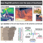 Nevertheless, a notable gap exists in these studies: the performance of RegCM over the ocean has been largely overlooked. Previous sensitivity experiments have primarily focused on key vulnerability variables like precipitation and near-surface temperature over land (e.g. Juneng et al., 2016; Ngo-Duc et al., 2024) – putting aside the more regional studies of Villafuerte et al. (2021) and Zou et al. (2019) which focused on precipitation over the Philippine Sea and East Asia, respectively – and the ability of RegCM to reproduce SEA sea surface conditions was rarely studied, and mostly with fixed configurations (e.g. Herrmann et al., 2020, 2022, who evaluated the ability of RegCM to reproduce the SEA sea surface winds). This is problematic because more than half of the SEA domain is composed of seas (Fig. 1), and many regional climate phenomena, such as monsoons, land–sea breezes and tropical cyclones, are rooted in air–sea exchanges. By neglecting oceanic areas, we thus miss a critical part of the picture. Furthermore, the authors are currently conducting research and development efforts to set up an atmosphere–ocean regional climate model over the region – which aligns with the latest direction of CORDEX suggesting that next-generation regional climate projections will increasingly involve regional Earth system models, notably including air–sea coupling (Giorgi and Gutowski, 2015). To date, the information gap in RCM performance over SEA seas leaves us – and more generally the regional community – largely unprepared for those upcoming coupled modeling projects. While quality reference data may have been lacking in the past, variables such as wind, precipitation and radiative heat fluxes are now well-monitored over the oceans via satellite-based remote sensing, enabling model assessments against these observations. In this study, we aim to fill this gap by assessing the performance of RegCM over SEA seas in terms of air–sea fluxes of heat, mass, and momentum.