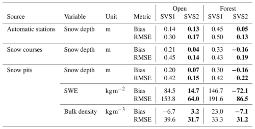 Leonardini, G., Anctil, F., Vionnet, V., Abrahamowicz, M., Nadeau, D. F., and Fortin, V.: Evaluation of the snow cover in the Soil, Vegetation, and Snow (SVS) land surface model, J. Hydrometeorol., 22, 1663–1680, https://doi.org/10.1175/JHM-D-20-0249.1, 2021. a, b, c, d, e, f, g, h