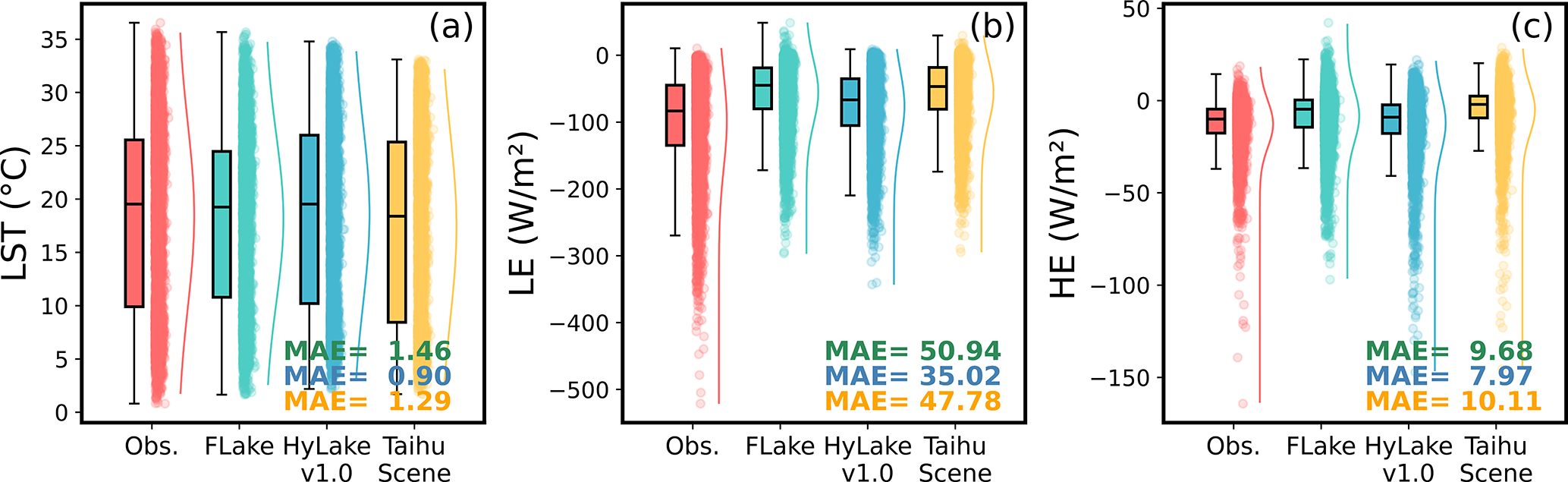 This study conducted a comprehensive intercomparison of daily and hourly trends in LST, LE and HE from MLW experiment in the MLW site during the period from 2013 to 2015, including FLake, Baseline, and HyLake v1.0 (Figs. 6–8).