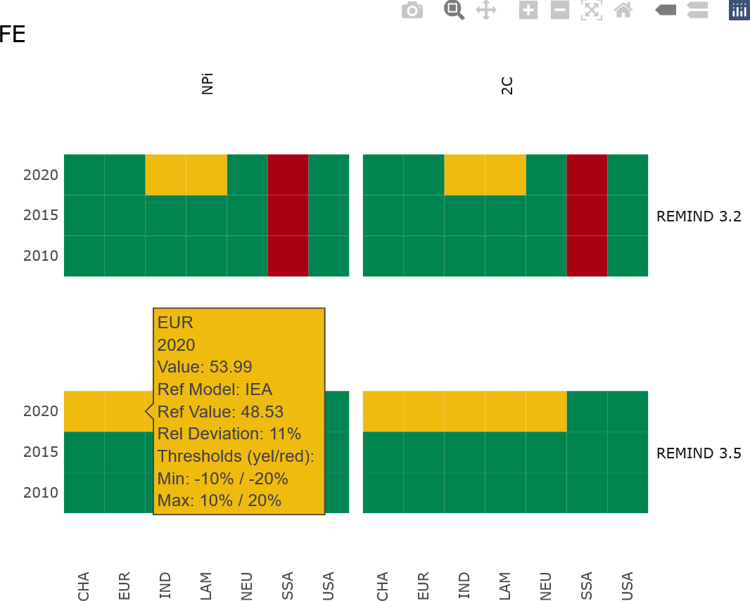 The primary benefit of the piamValidation tool lies in its ability to efficiently provide an overview of variable deviations within large-scale datasets. It also facilitates systematic validation across IAM scenarios and supports sanity checks throughout model development processes. Furthermore, the tool serves as a potential platform for the IAM community to collaboratively build a repository of knowledge on reasonable validation thresholds.