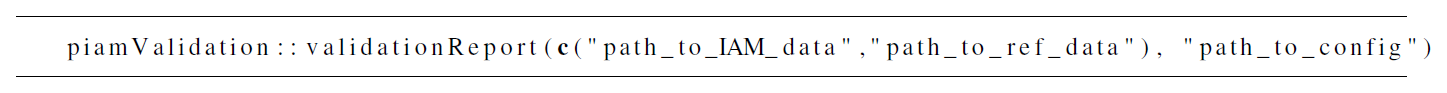 In Sect. 2, we present the piamValidation open-source R package. The tool enables users to systematically compare variables of large IAM datasets with historical data and feasibility bounds or across scenarios and models. The core function of the tool is to validate IAM results and identify discrepancies. In addition, it also supports harmonizing national and global IAMs in the short and medium term, particularly for current policy scenarios that capture implemented government policies. Furthermore, the tool allows for systematic comparisons of near-term technology dynamics with external observational data as historical, near-term trends or empirical estimates. The piamValidation tool is particularly user-friendly and requires only a single command to generate the full HTML report featuring validation heat maps.