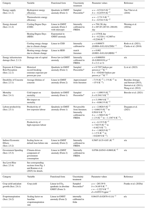 Table 1Summary of the climate impact channels represented in FRIDAv2.1.