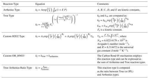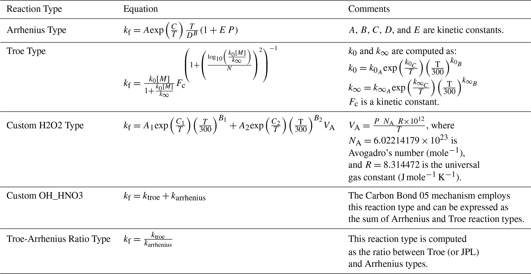 Table 2Gas reaction types available in TChem-atm; further details can be found in the TChem-atm online documentation.