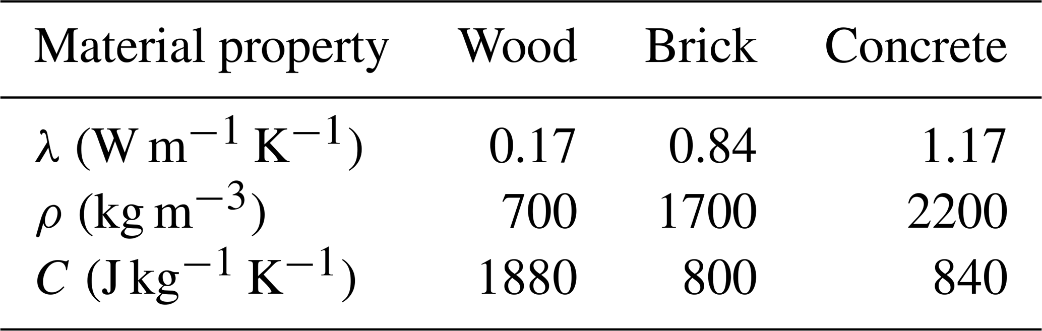 with λ being the thermal conductivity of the material, ρ is the density and C is the specific heat capacity. t is the characteristic time in seconds, as described below. Tair is the air temperature.