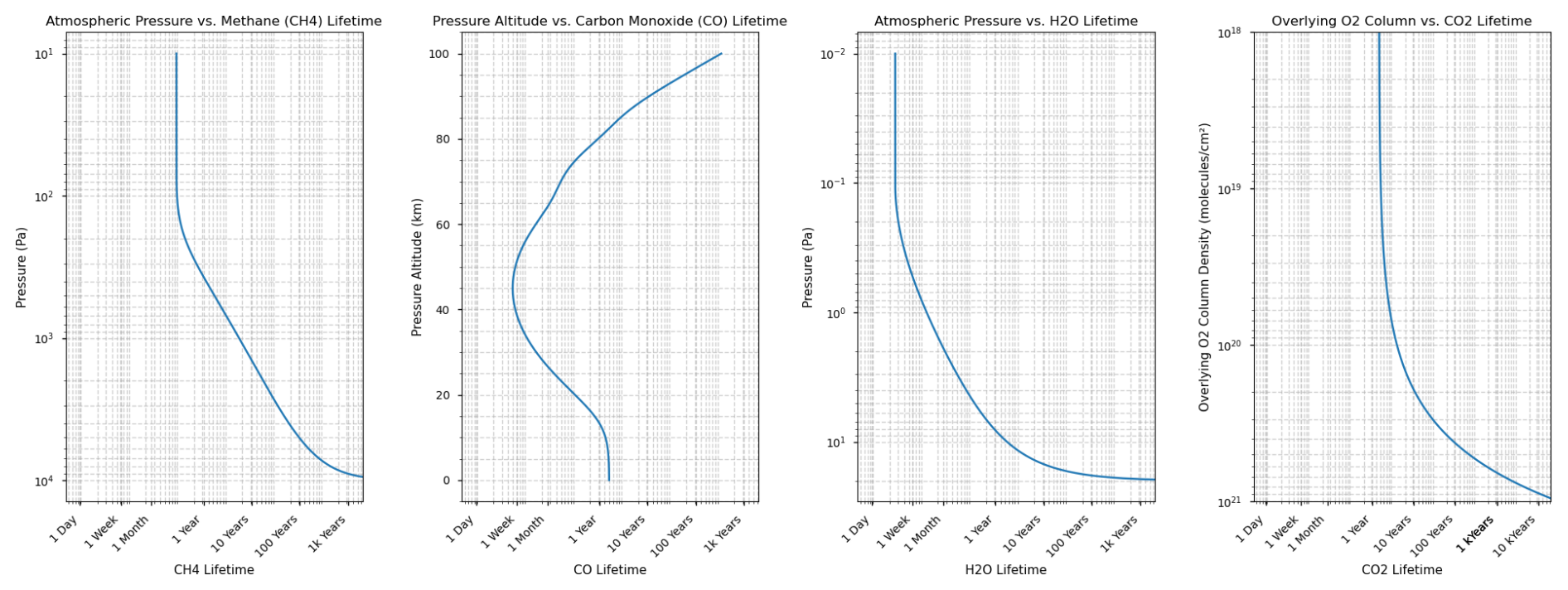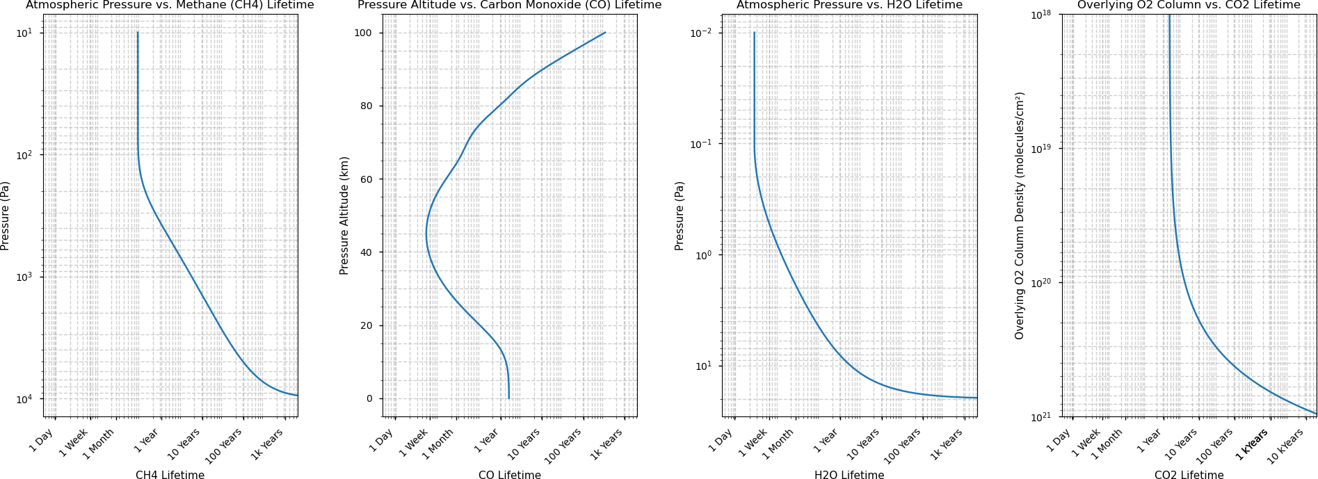 Lifetime tracers in ICON-ART should be used when a very fast chemistry, but not the highest accuracy is needed. Some tracers in ICON-ART get a special treatment when they have specific names and when ”lifetime“ is chosen as solver. Tracers with lifetimes changing vertically as a function of pressure or overlaying O2 column are those presented in Fig. 2. The corresponding formula are summarized in Appendix G. For other tracers with “lifetime” chosen as solver, the globally constant lifetime given in an XML file is used.