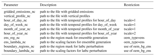 Inputs for OEM can be produced with the Python package emiproc (Constantin et al., 2025), which is able to process multiple emission inventories to prepare the inputs for a range of atmospheric transport models including ICON-ART. The tool maps the emissions in a mass-conserving way onto the ICON grid and creates all additional inputs including source and country-specific temporal and vertical profiles and the corresponding country masks. The tool is also able to merge multiple inventories, for example to embed a high-resolution national inventory into a coarser global inventory.