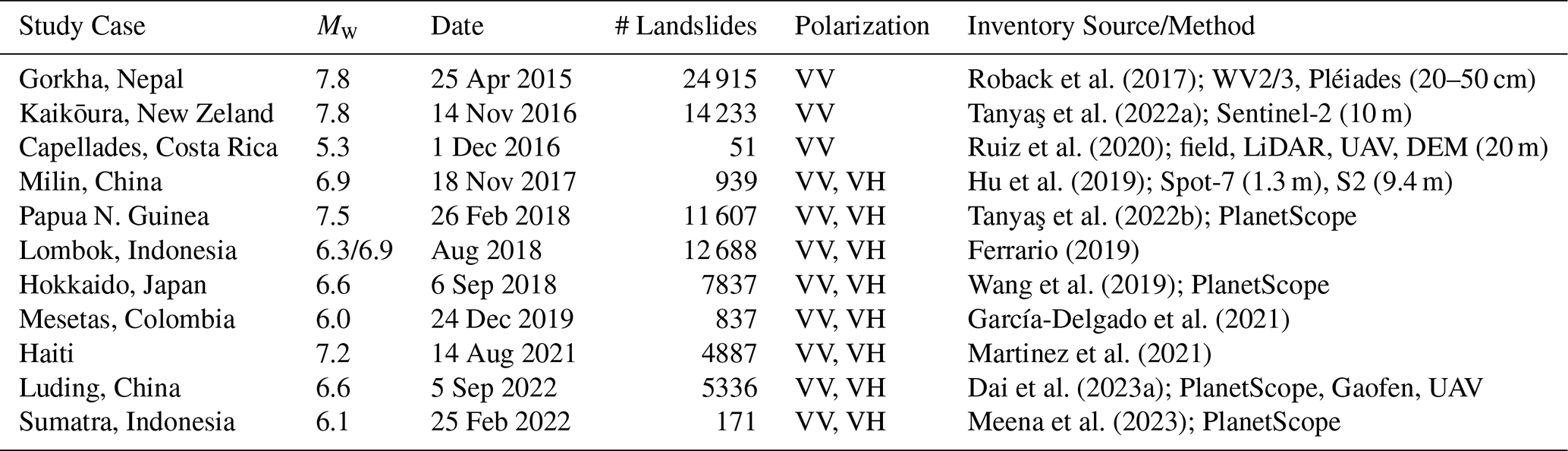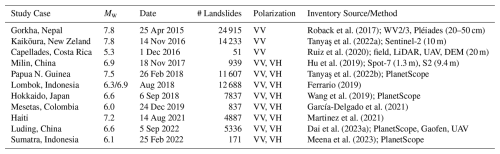 Table 1Summary of Earthquake-Triggered Landslide Inventories and Sentinel-1 Polarizations.