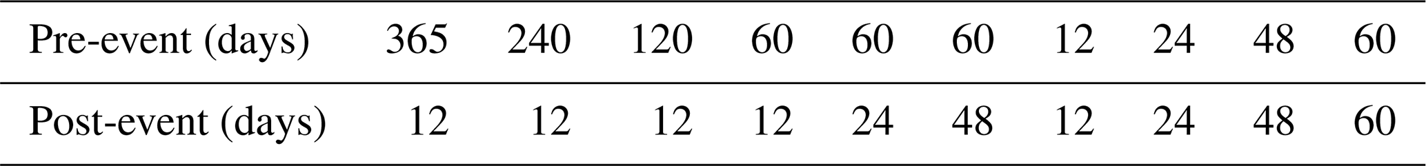 Table 3Temporal Buffers Applied to the Dataset Combinations in Table 2.