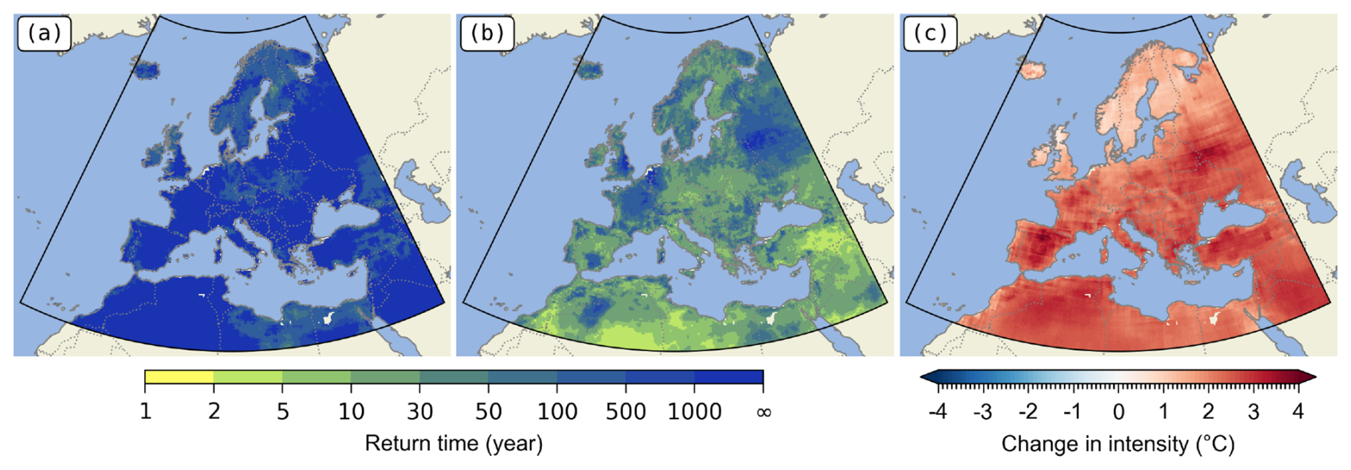 Heatwaves are extreme phenomena whose frequency and intensity have increased with global warming (see, e.g. Seneviratne et al., 2021; IPCC, 2022a). Humans (see, e.g. Campbell et al., 2018; Huang et al., 2022; Masselot et al., 2023), plants (see, e.g. Hatfield and Prueger, 2015; Brás et al., 2021), ecosystems (see, e.g. Bastos et al., 2021) and infrastructure (see, e.g. Zuo et al., 2015), can suffer significant damage beyond certain thresholds, so it has become necessary to be able to predict and anticipate these events. Over recent decades, these findings have led to the development of the so-called extreme event attribution studies, which consist in establishing the weight of human influence in the occurrence or intensity of an extreme event (Perkins-Kirkpatrick et al., 2024). A number of methods and protocols have been developed (see, e.g. Ribes et al., 2020; Philip et al., 2020; Robin and Ribes, 2020a) which have enabled the analysis and attribution of a number of extreme events. The World Weather Attribution (WWA, 2024) group has specialized in producing attribution studies within a short time (typically within a week) following the occurrence of an event. Notable examples include the heatwave in Siberia in 2020 (Ciavarella et al., 2021), the heatwave in the USA and Canada in 2021 (Philip et al., 2022), and the wet heatwave in India in 2023 (Zachariah et al., 2023b). Other types of event can also be analyzed, such as extreme rainfall (Zachariah et al., 2023a, 2024; Clarke et al., 2024b), drought (Clarke et al., 2024a), or wildfire (Barnes et al., 2023), and others.