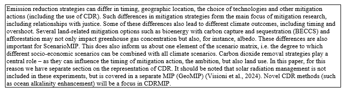 - Further elaboration of the design of the emission scenarios for CMIP7