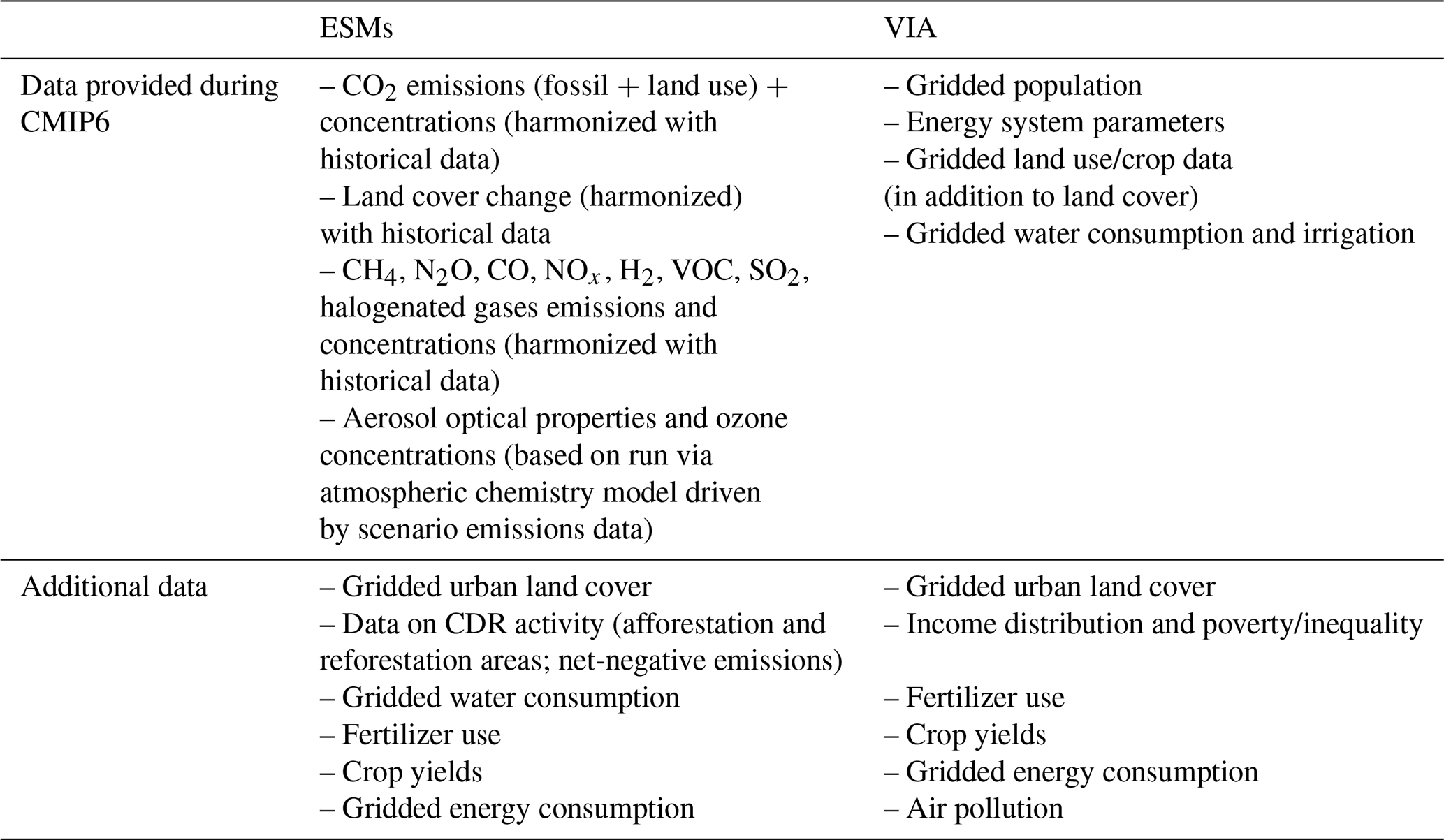 Various model types exist to explore the physical climate system, including Earth System Models (ESMs), General Circulation Models (GCMs), EMICs (Earth System Models of Intermediate Complexity) and SCMs (Simple Climate Models). Here, we use the term ESM to refer to all types of climate models.