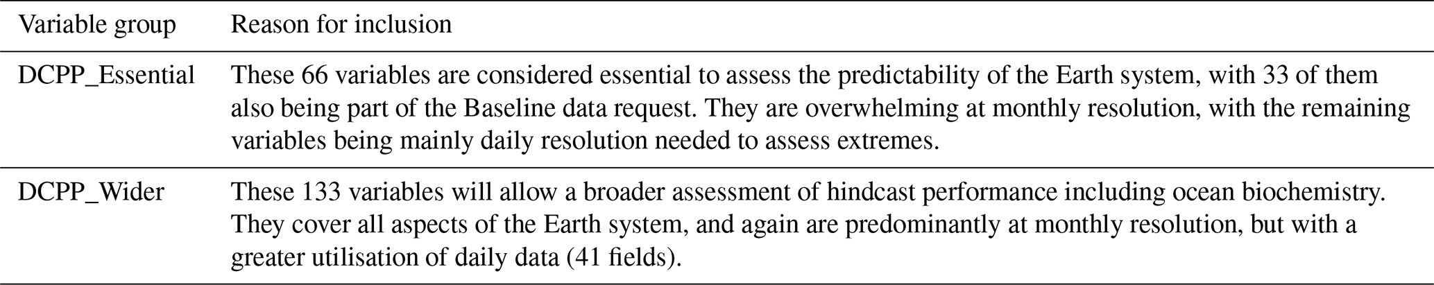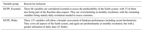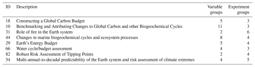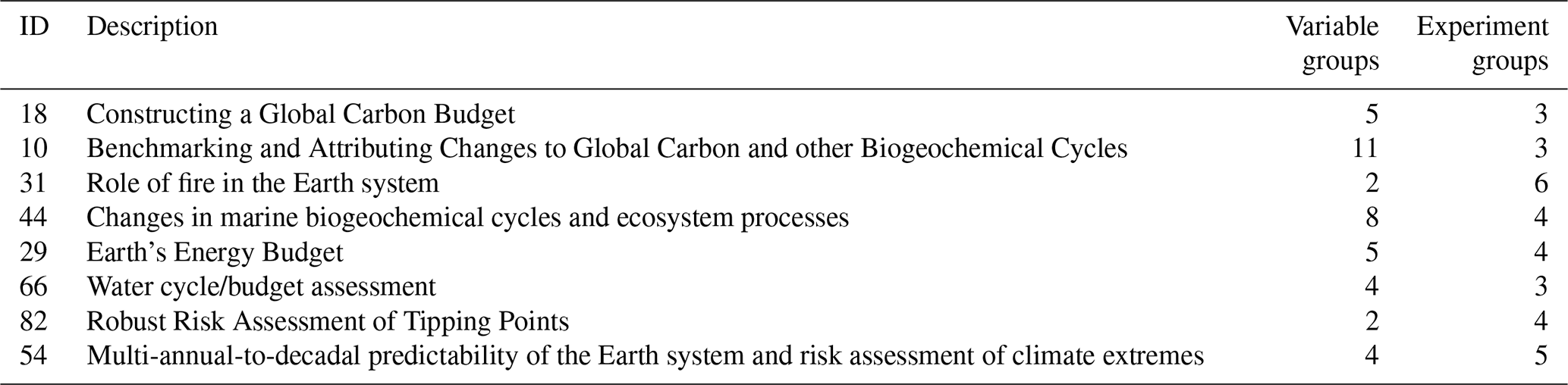 Table 9Variable groups for multi-annual-to-decadal predictability of the Earth system and risk assessment of climate extremes (ID54).