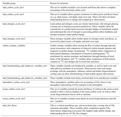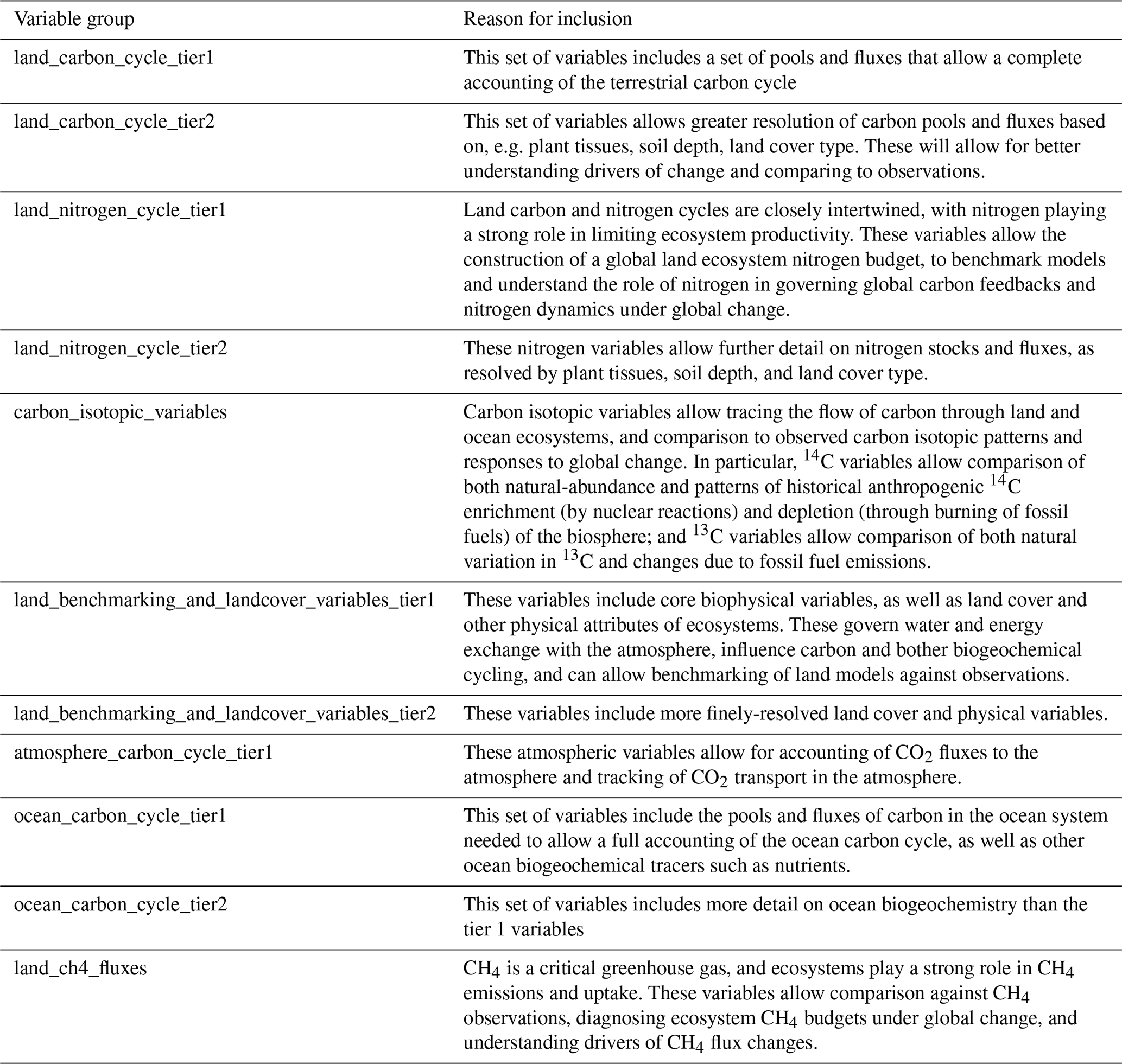 Table 2Variable groups needed for ID18: Constructing a Global Carbon Budget.