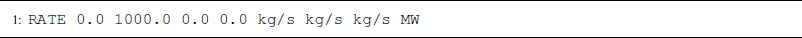 If thermal effects are being considered, the RATE keyword expects an additional entry for energy flux. Note that this also applies to FIXED_TEMPERATURE_GRADIENT, and that the energy source term is added on top of the enthalpy of the fluid being injected. Therefore, it is most common for the energy source/sink to be 0. Units also need to be provided, typically in MW. For example, a modified RATE when running thermal simulations would appear as in Listing A5.