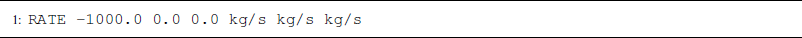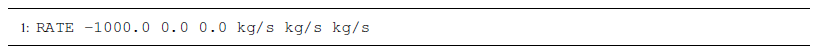 Negative RATE values extract mass from the reservoir through the well. Reservoir fluid temperature and composition are always used with extraction wells. Thus, the values provided are always total mass rates. Any values provided to the mass rate terms are summed, and PFLOTRAN applies that value as the total mass extraction rate applied to the model. Therefore it is recommended that users supply total mass extraction rates to the first entry of each RATE for simplicity. To extract 1000 kg s−1 of total mass in an isothermal simulation, a RATE would appear as in Listing A6.