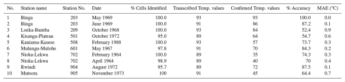 Table 2Validation results of ten sample data sheets transcribed using MeteoSaver v1.0.