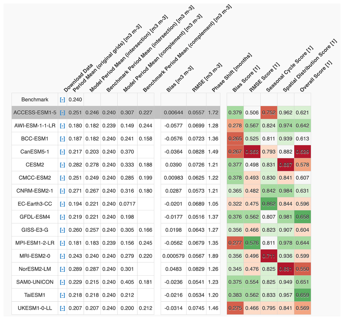 Figure A2Overall scores that provide the ILAMB results in Fig. 3 are depicted numerically here.