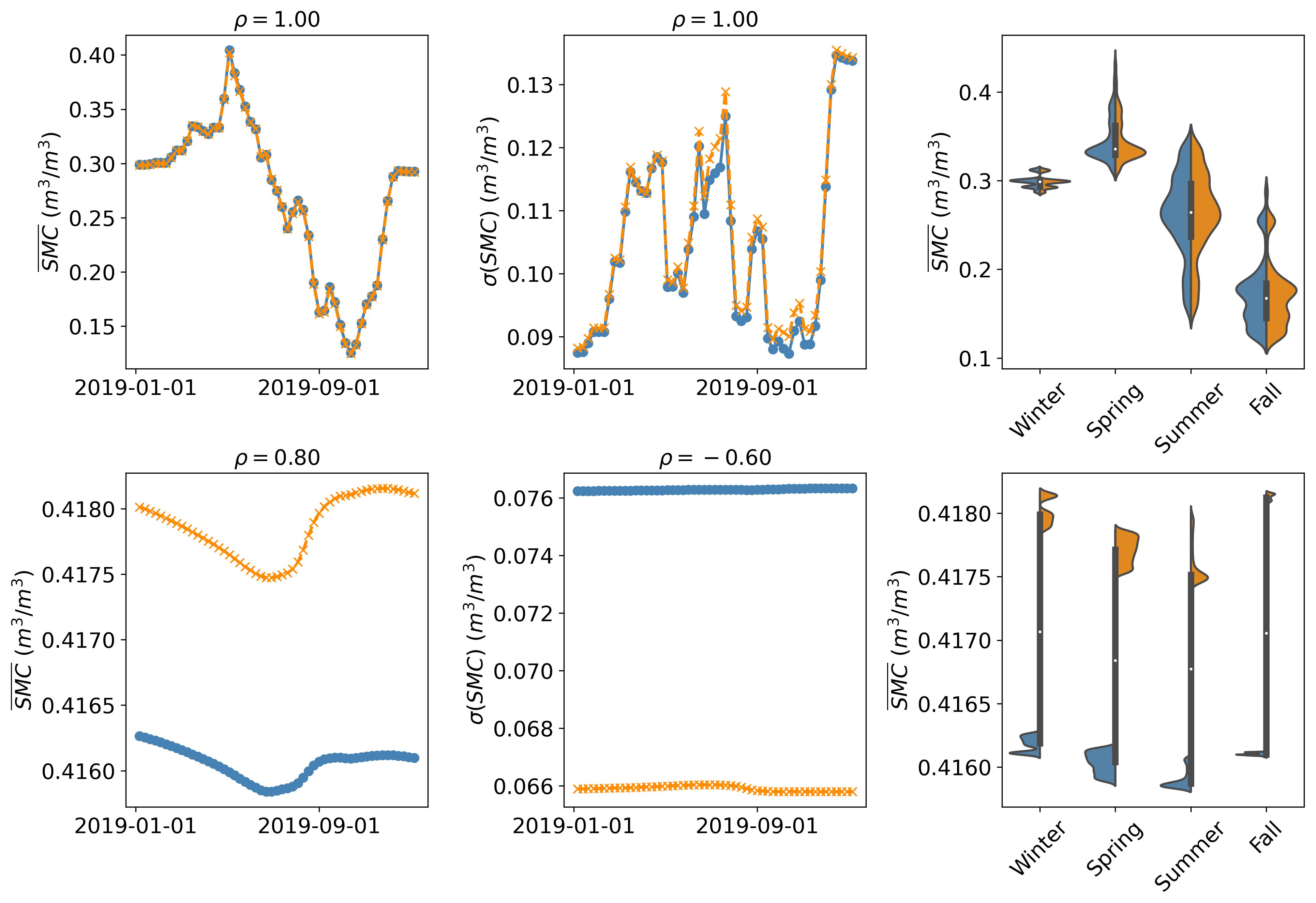 Soil Properties: To parametrize the soil column, we used POLARIS (Chaney et al., 2019), a database of ∼30 m probabilistic soil property maps over the contiguous United States, covering variables such as soil texture, organic matter, pH, saturated hydraulic conductivity, and water retention curve parameters up to 2 m deep, for deeper soil layers, we adopted a linear extrapolation. In POLARIS, each ∼30 m grid cell is assigned probabilities for various soil series, integrated with vertical soil profile data. This process calculates minimum, maximum, weighted average, and weighted variance for each cell, defining a beta distribution for soil parameters at different depths. The median values for porosity (θs), wilting point (θwp), field capacity (θfc), and saturated hydraulic conductivity (Ksat) are derived from these distributions. These values are then used to compute saturation suction (ψsat) and the inverse of the pore size distribution index (λ), which are inputs for the Campbell (1974) water retention model (Chaney et al., 2018). For the subsurface processes in this experiment, we considered a 10 m deep soil column everywhere, divided into six layers of variable depths: 0.05, 0.1, 0.35, 1.0, 1.5, and 7 m.