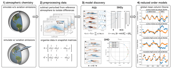 Data-driven discovery and model reduction methods for the atmospheric effects of high altitude emissions